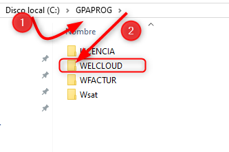Si no tenemos en la carpeta de GPAPROG, la carpeta WELCLOUD, hay que ponerse en contacto por E-mail a soporte@gpasoft.com para que podamos instalarlo.