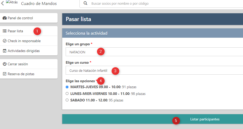 Desde el menú se deberá acceder al apartado Pasar Lista a través del botón que muestra la imagen