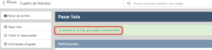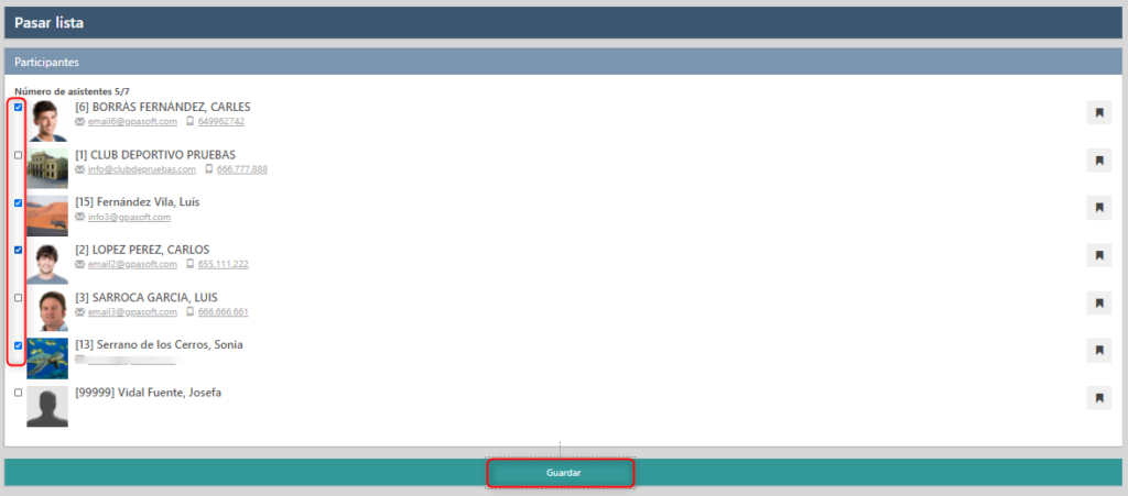 Se mostrará la lista de los inscritos y deberán marcar los asistentes