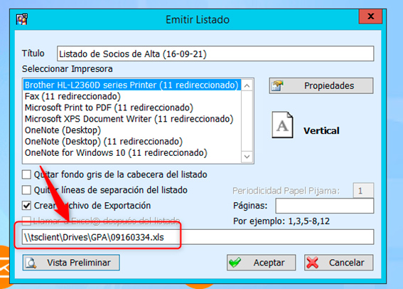 Este paso ya es como siempre, vamos a emitir un listado y ponemos la ruta de la carpeta.
