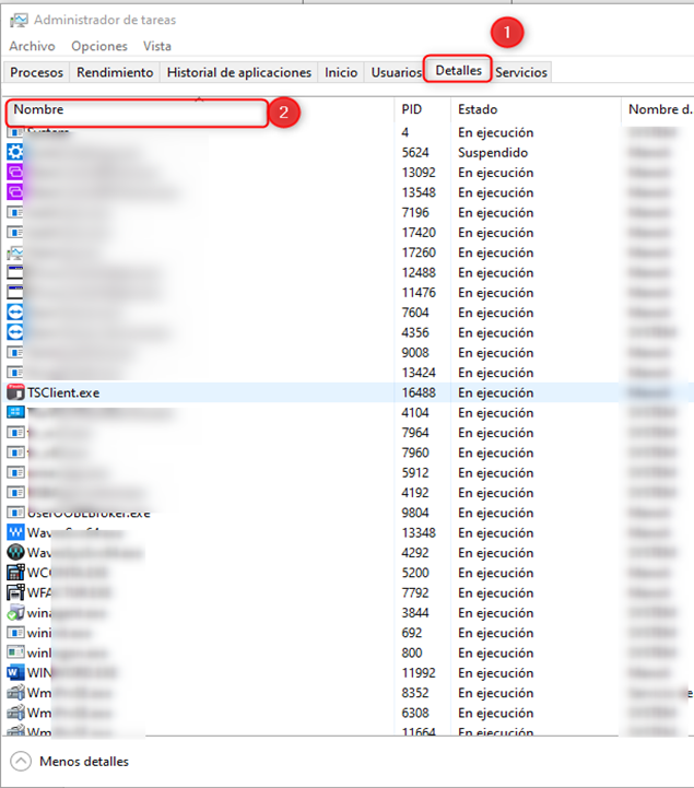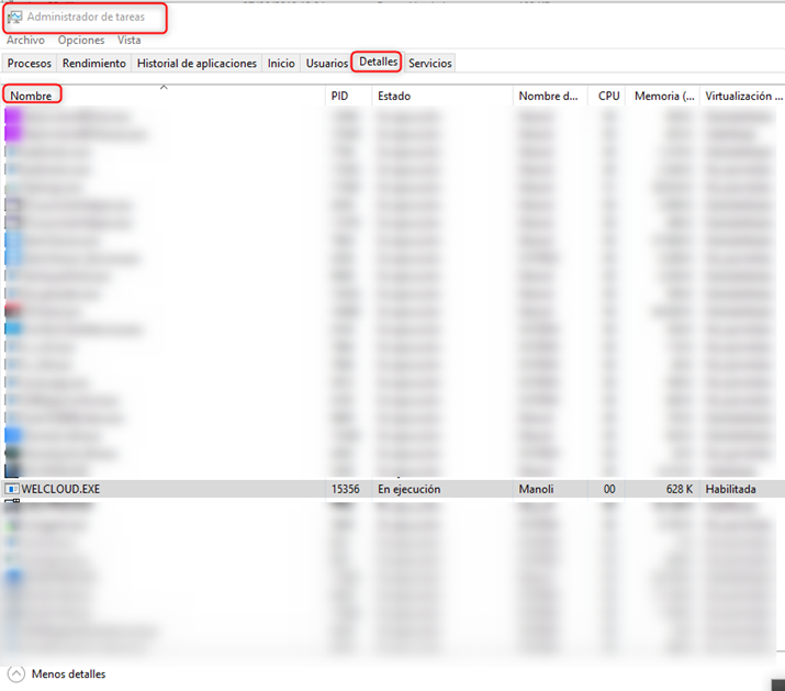 En el “Administrador de tareas” comprobar que el WELCLOUD está en ejecución.