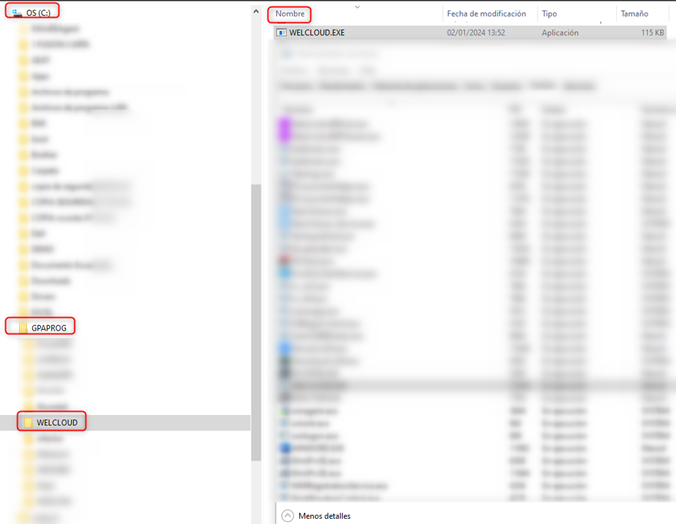 En ese caso, deberemos ir a “Mi Equipo” a nuestra unidad disco local “C” y buscar la carpeta “GPAPROG” y dentro la carpeta “WELCLOUD” y abrirla.