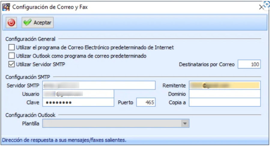 Es necesario poner los datos del Servidor SMTP (solicitar al proveedor de correo), Usuario y contraseña del correo, el puerto (solicitar al proveedor de correo) y ya por último el remitente.