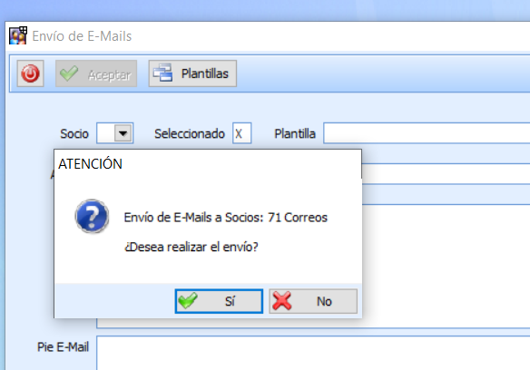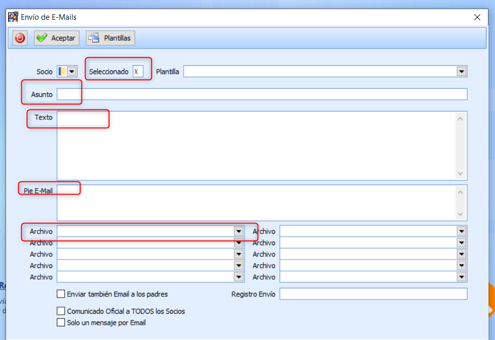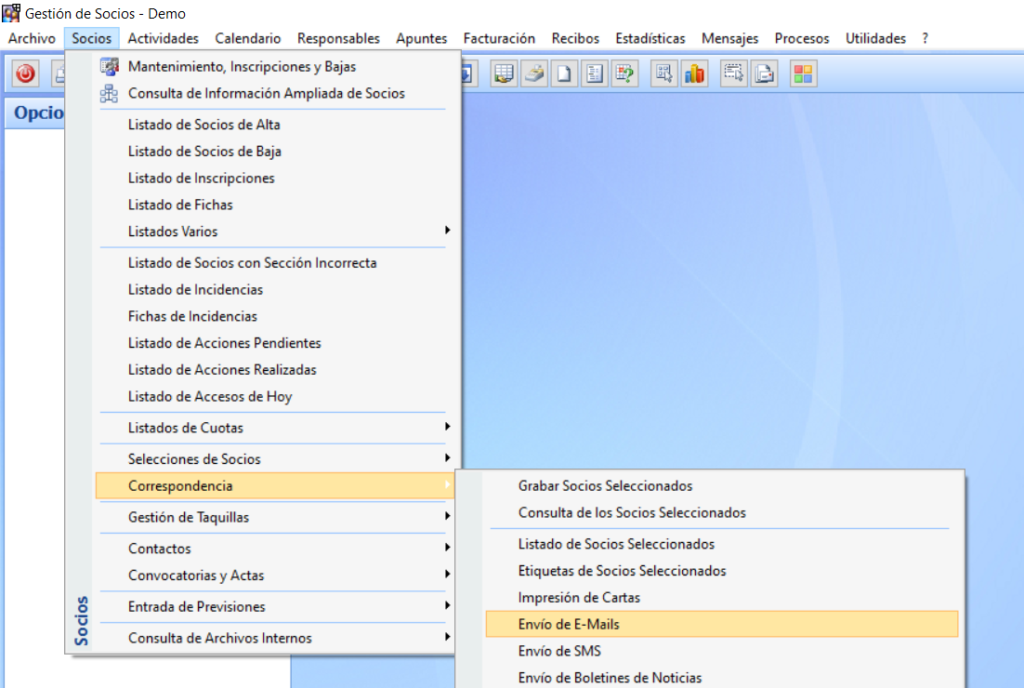 Gestión de Socios > Socios > Correspondencia > Envío de Emails