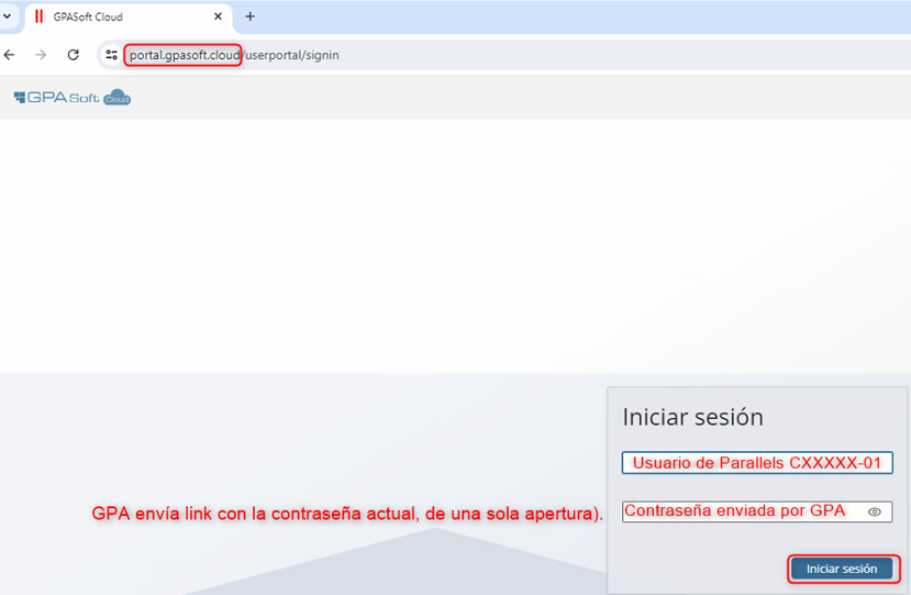 Desde Soporte de GPASOFT le habremos hecho llegar un link con la contraseña actual que tenia en el Parallels (ANOTESELA) al habernos informado de su usuario.