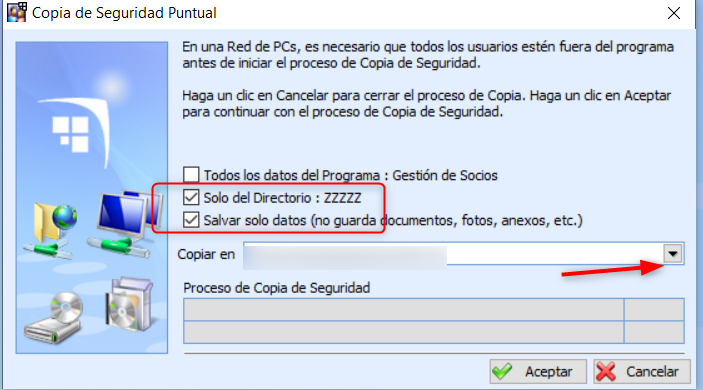 En copia: Indicar la ruta donde deseamos guardar la copia, deberá ser una carpeta previamente creada.
