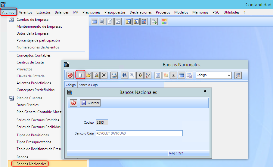 Alta cuenta contable