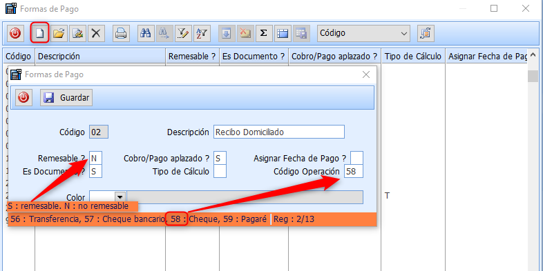 Seleccionar hoja blanca para dar de alta las Formas de Pago que la empresa vaya a utilizar, “domiciliación /Transferencia/Talón, etc.” de una solo entidad o varias.