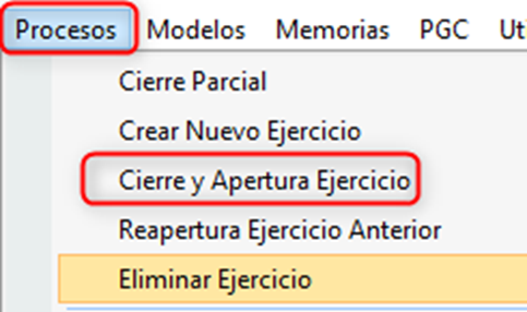Ejercicio: Por defecto propone el año a cerrar.
