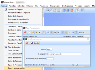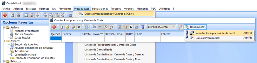 Las cuentas, C. Costes, Proyectos, indicados han de estar dado de alta en el programa, el campo Tipo, es obligatorio, dar de alta en: