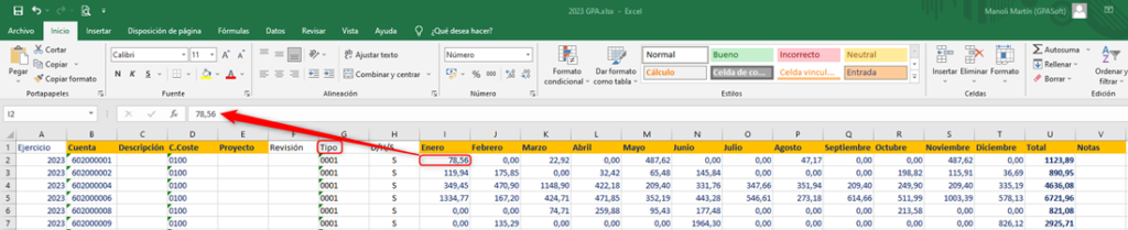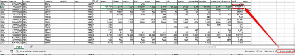 En toda la hoja Excel, los formatos, los importes, sumatorios, etc, debe estar bien definidos, sino es así, el programa no permitirá su captura.