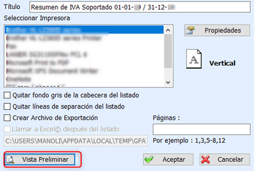 En la pantalla de impresión seleccionar Impresora y marcar para exportar a Excel si se considera necesario