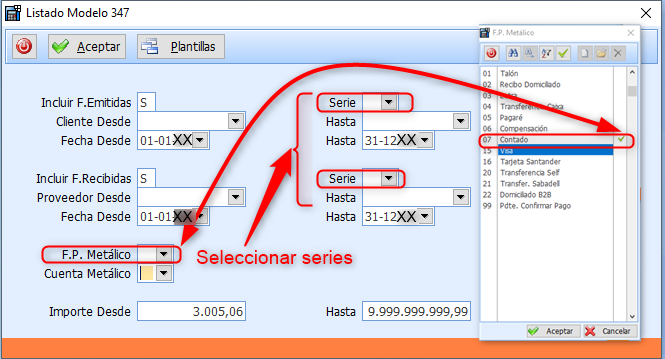 Incluir F. Recibidas: Seleccionar las seriesdel año