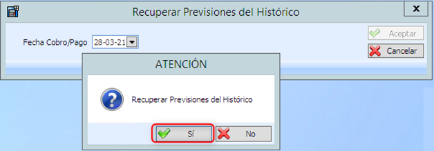 Esta opción recupera del histórico las previsiones, pero los asientos generados se deben borrar manualmente.