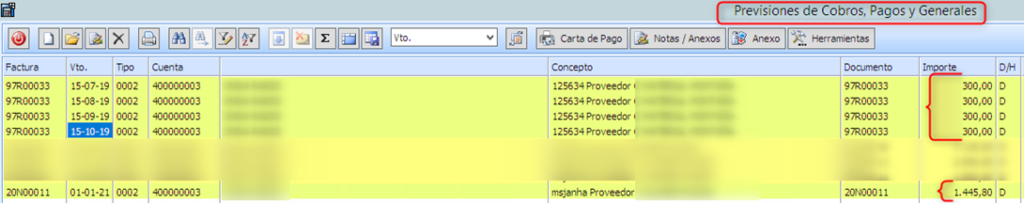 Se puede desmarcar cualquier vencimiento si finalmente se decide que no lo recoja el fichero.