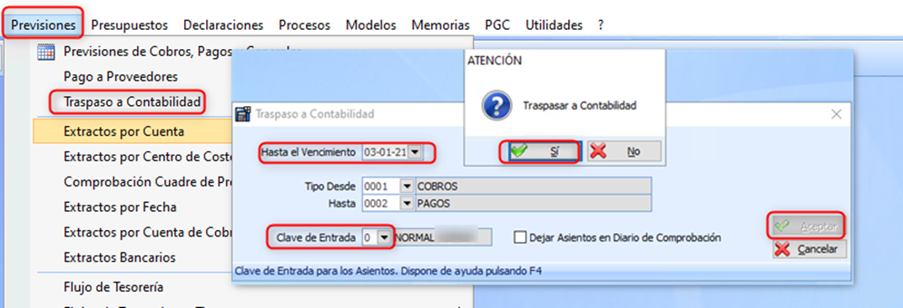 El programa por defecto, mostrará marcadas todas las previsiones de esa fecha, ya asentadas en los mayores.
