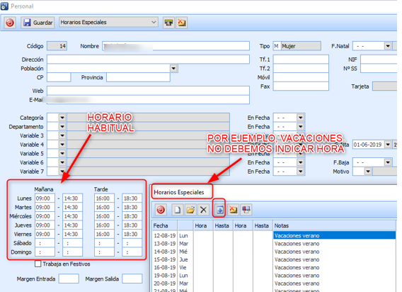 Utilizando F2 o la hoja en blanco deberán dar de alta a todos los trabajadores, indicando el horario correspondiente para cada uno de ellos