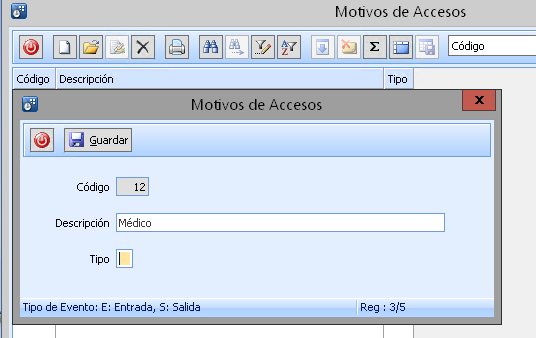 Control de Presencia > Archivo > Motivos de Accesos