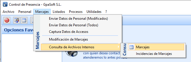 La primera vez que se envíen los datos deberán utilizar la opción: Control de Presencia > Marcajes > Enviar Datos de Personal (Todos)