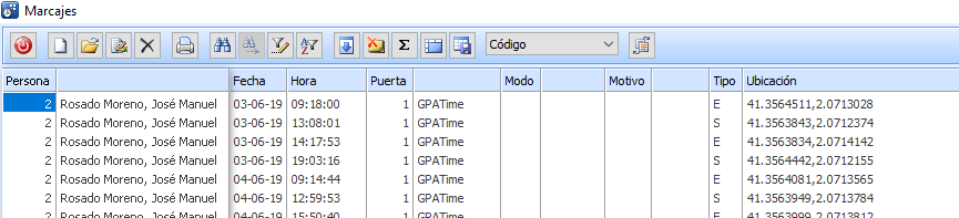 Consulta Geolocalización del marcaje