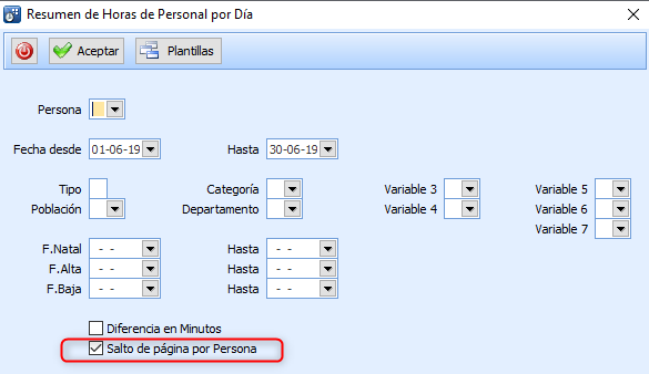 Es importante que este marcado el check de «Salto de página por Persona» para que posteriormente se pueda enviar por email de manera unipersonal.