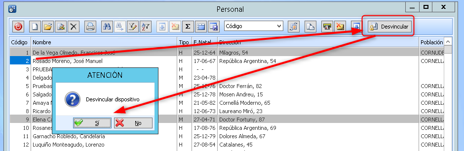 Dar de alta al personal