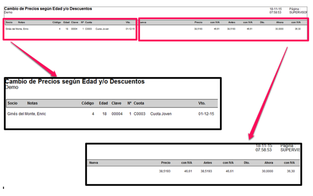 Se obtendrá un listado en el que sólo aparecerán las cuotas en las que cambie el importe o en las que se deba aplicar una nueva cuota.