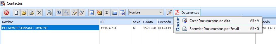 Para la firma del RGPD de Contactos se utilizará el mismo sistema que para socios, se deberá dar de alta en la tabla de documentos en la opción :