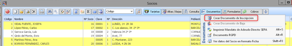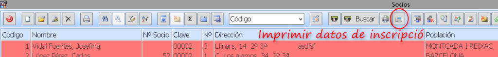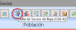 Si queremos modificar el documento de inscripción que tenemos guardado, debemos forzar el Alta de Socios de Baja cliclando el botón de la imagen o bien con las teclas Ctrl-A