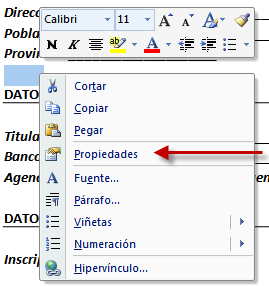 Para ello pulsar botón derecho del ratón sobre el y seleccionar la opción de Propiedades.