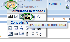 Una vez seleccionado el control, dibujaremos en el documento el recuadro del marco.