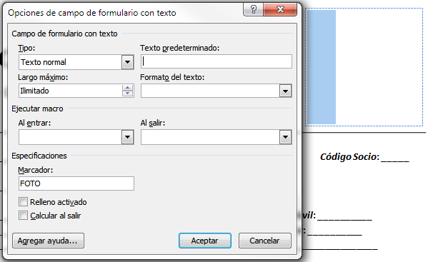 Si fuese necesario modificar ciertas partes del documento una vez se ha personalizado, es posible añadir campos de formulario que no tengan un marcador relacionado con el programa de socios.