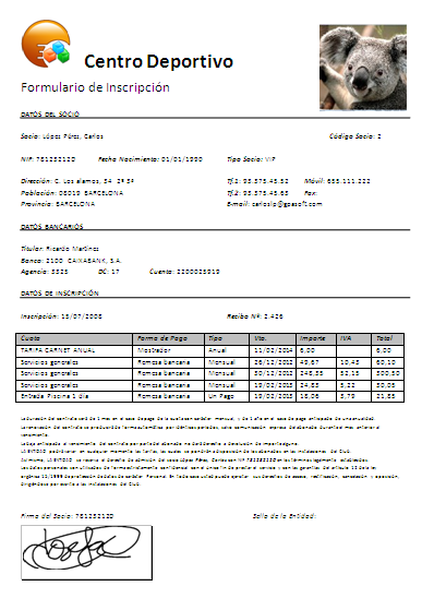 Aquí tenemos un ejemplo del documento de Inscripción inicial de un Socio.