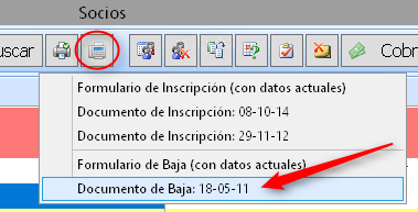 Si queremos modificar el documento de baja que tenemos guardado, debemos forzar la Baja de Socios cliclando el botón de la imagen o bien con las teclas Ctrl-B