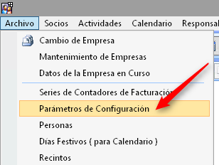 Desde la opción de menú Archivo > Parámetros de Configuración, le indicaremos al programa la ruta de los documentos