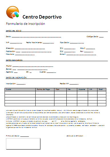 Al realizar un alta o baja, el programa copiará la plantilla correspondiente personalizándola para cada socio. Para hacerlo, se inserta la información del programa dentro del documento utilizando lo que se conoce como campos de formulario. Estos campos se rellenarán de forma automática desde el programa en el documento personalizado de cada inscripción.