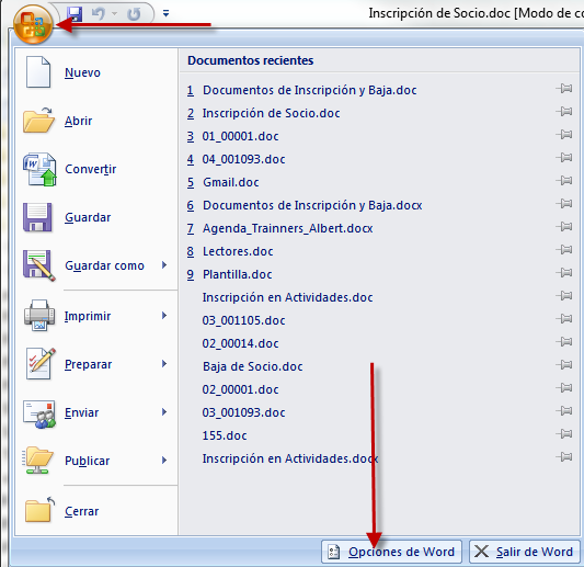 Ir al icono de la zona superior izquierda del programa, cuando aparezca el menú pulsar en Opciones de Word.