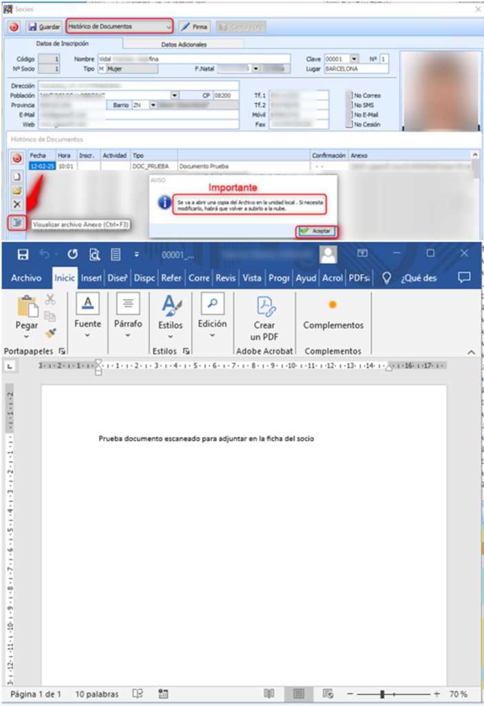 Quedará guardado en Histórico de Documentos de la ficha del socio, desde donde se podrá consultarlo siempre que lo necesitemos.