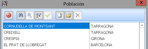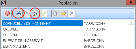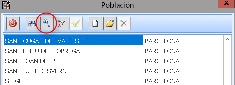 Este sistema de búsquedas y filtros, explicado como ejemplo, para las Poblaciones, se aplica a cualquier tabla de ayuda con el botón a la derecha.