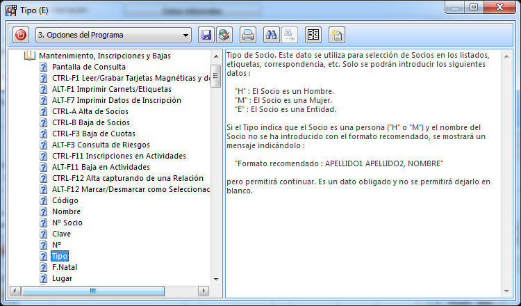 Y si necesitan mayor información al respecto del dato concreto o del resto del programa, se pulsa la tecla F1, aparecerá el manual.