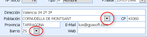 Hay datos que disponen de un botón a la derecha para poder buscar en la tabla correspondiente situada en el menú Archivo. Por ejemplo en la población.