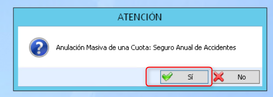 El programa anulará la cuota seleccionada (en el ejemplo «Seguro Anual de Accidentes»)