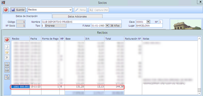 En la opción de recibo de la ficha, se puede ver el recibo cobrado
