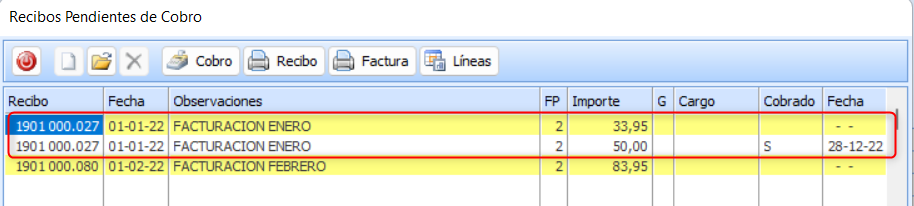 En el caso de que el cliente haya realizado el cobro parcial del recibo, por ejemplo, paga solo 50,00€ del total del recibo