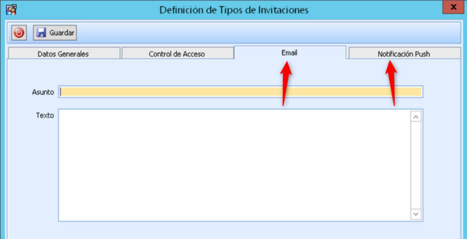 Gestión de Socios > Archivo > Tablas de Accesos >Definición de Tipos de invitaciones