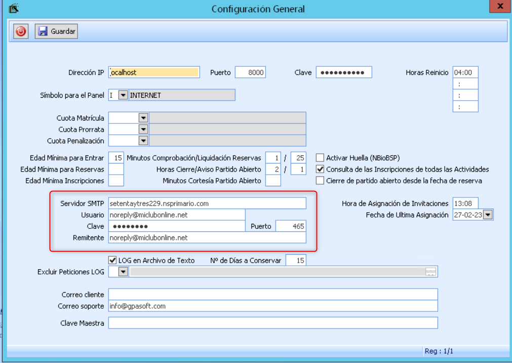 Para poder realizar los envíos de forma automática, se necesita realizar la configuración de correo con los datos del SMTP (se deben pedir al proveedor de correo) para el envío de email, una vez tengamos los datos lo debemos rellenar en el Configurador Web, desde la opción :