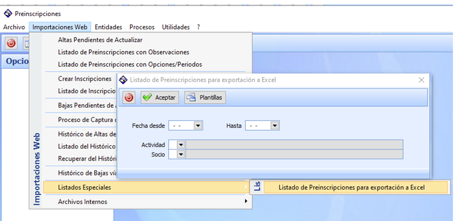 Si aun no se han traspasado, las observaciones que el socio detalla en las inscripciones, se pueden ver desde esta opción.