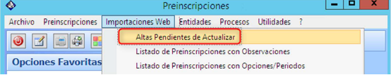 Preinscripciones > Importaciones Web > Altas pendientes de Actualizar