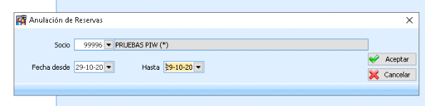 Deberéis introducir el socio y la fecha de la reserva a anular