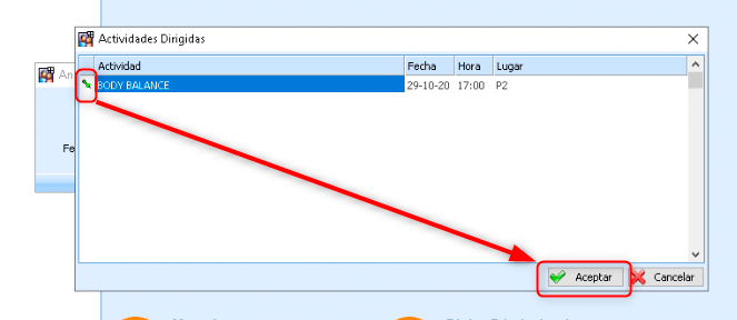 Para realizar reserva de actividad dirigida desde el Club, deberéis acceder al programa de Gestión de Socios en la opción: